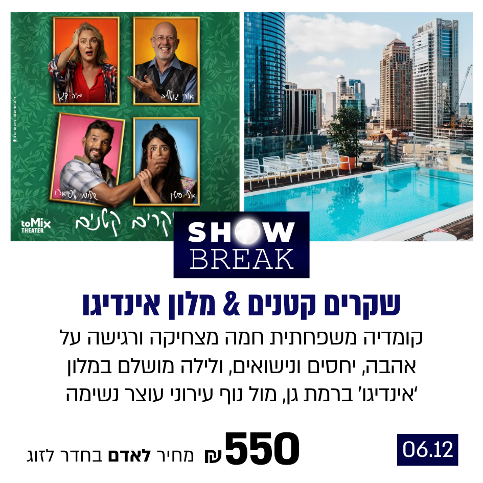 החופשה כוללת לילה מפנק במלון, ארוחת בוקר, כרטיס להצגה ודרינק ראשון במתנה.